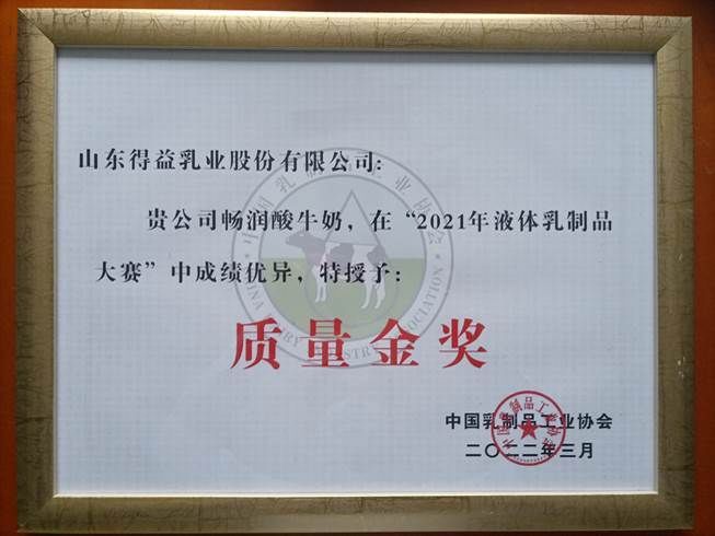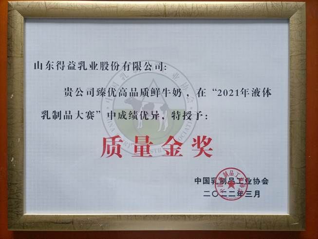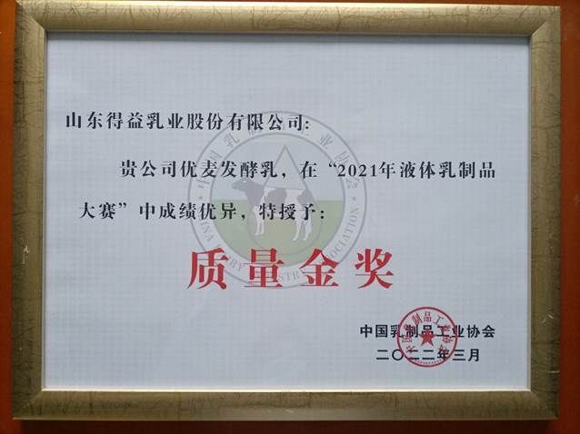 这次“质量金奖”是协会领导与社会各界人士对得益乳业2021年工作上以及产品上的全面认可,也是激励得益乳业持续生产鲜活牛奶的强劲动力。未来,得益乳业将继续深化低温巴氏奶战略,夯实全产业链生态自控根基,持续为消费者提供安全、营养、鲜活的乳制品。(吉喆)