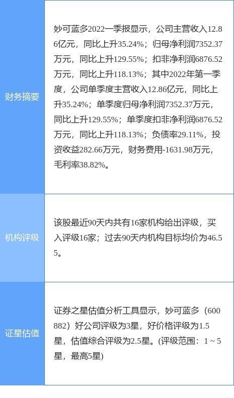 妙可蓝多发布2022年第一季度报告,实现营业收入12.86亿元,同比增长35.24%;归属于上市公司股东的净利润7352.37万元,同比增长129.55%。基本每股收益0.144元。